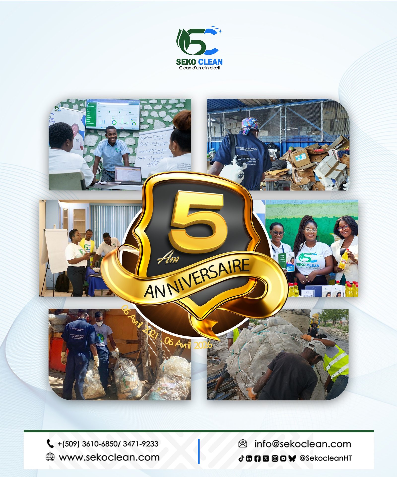 5 ans déjà ! Depuis le 6 avril 2021 , SEKO CLEAN se développe , innove et se réinvente , transformant chaque défi en levier de croissance et de succès , au service de ses clients et de sa communauté.